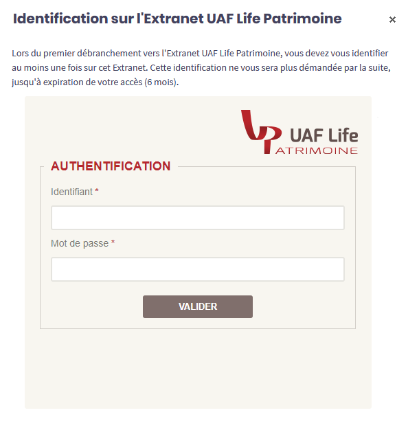 Il s’agit de vos codes d’accès à l’extranet UAF LIFE Patrimoine.