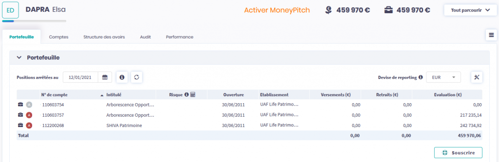 - Vous accédez alors directement à l’extranet de UAF LIFE Patrimoine.
