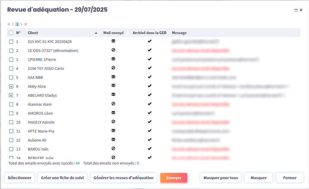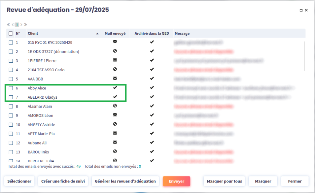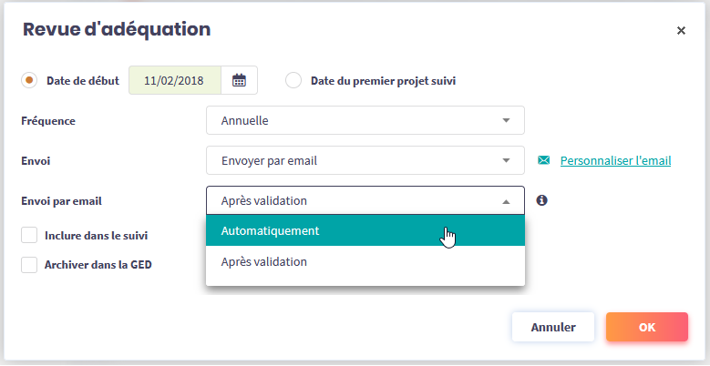 Pour valider manuellement l’envoi initialement automatisé des revues périodiques d’adéquation, suivez la procédure ci-dessous :