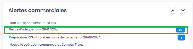 Cliquez sur la ligne Revue d’adéquation – XX/XX/2025