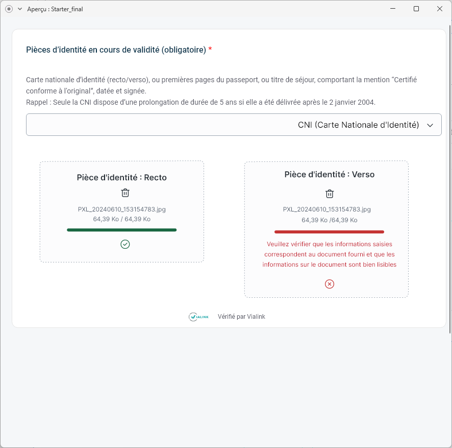 En quelques secondes, Document Recognition valide (en vert) ou invalide le document (en rouge).